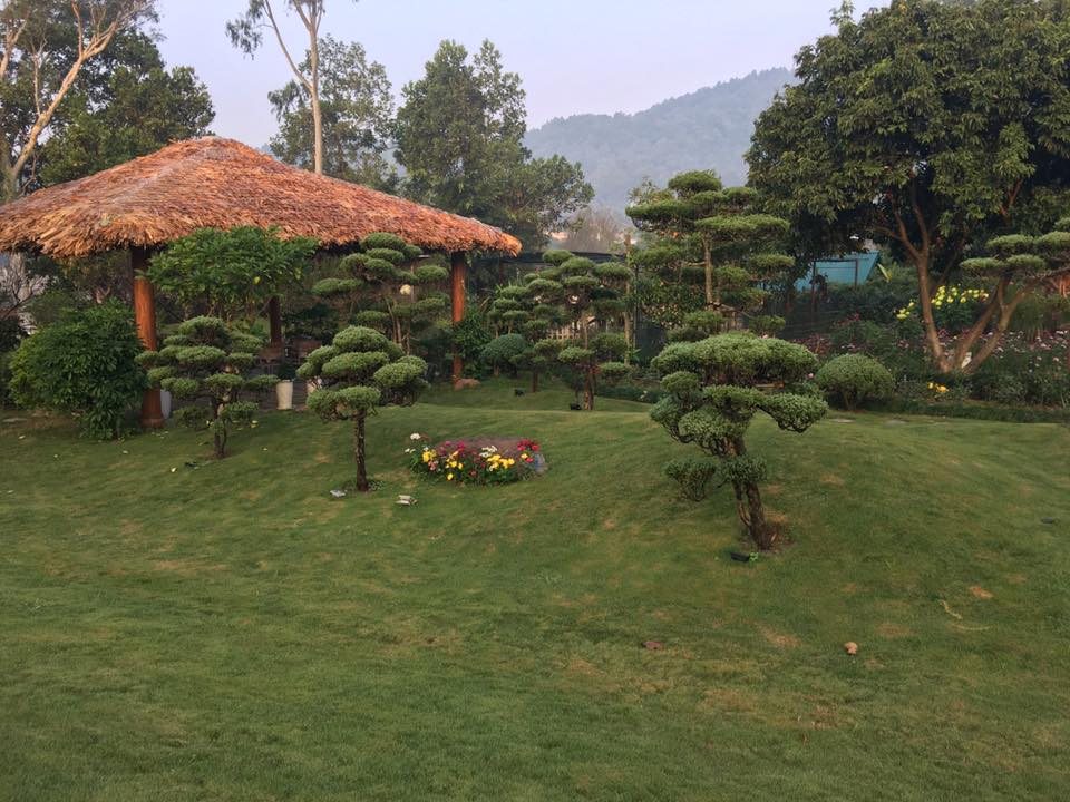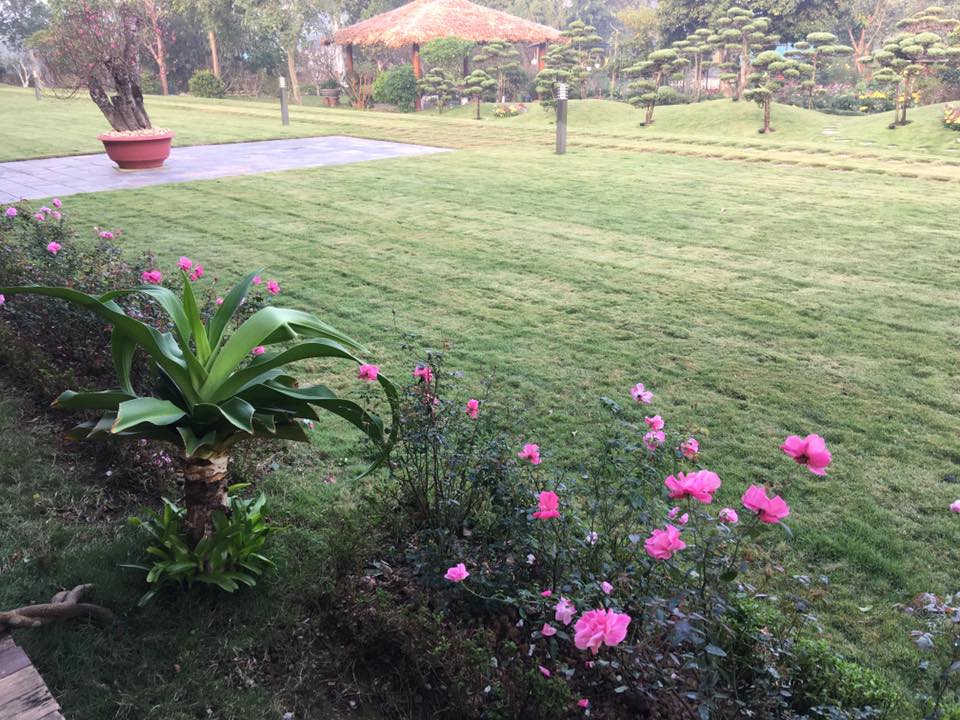 | Khu vườn xanh mát với hoa và cây. Ảnh FBNV |