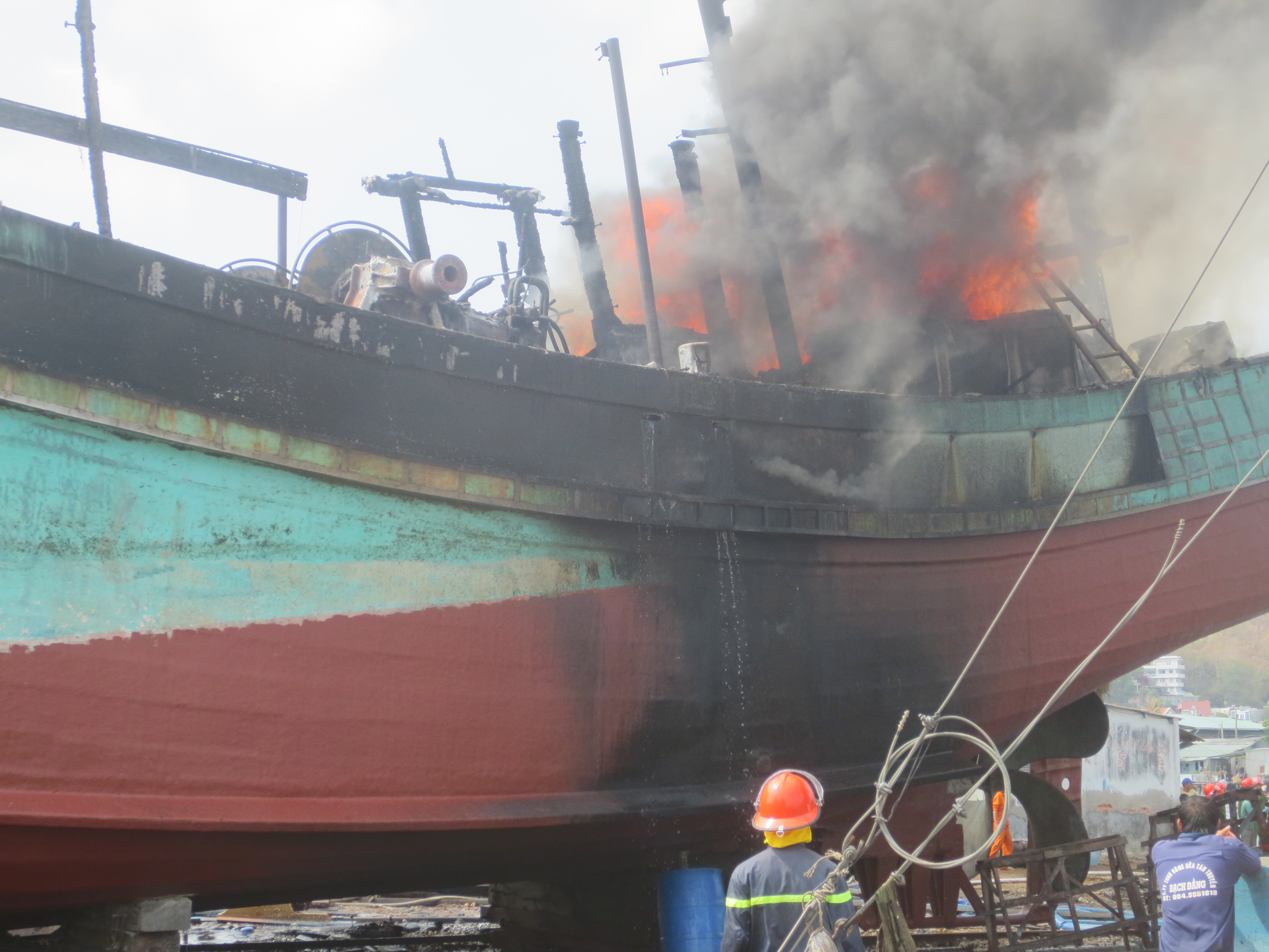 Sự việc xảy ra vào chiều tối 20/8, trong lúc đang lao động trên biển, bình ga trên tàu cá QNg 96569 TS đã phát nổ, khiến 2 ngư dân bị thương nặng.