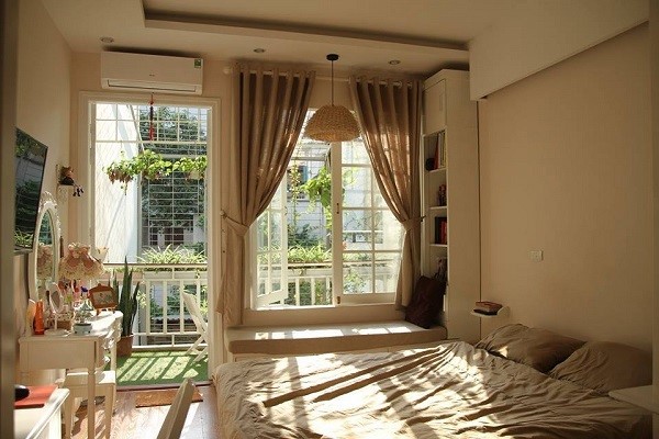 | Góc học tập và làm việc nằm gọn gàng bên cửa, nhìn ra ban công xanh màu cây lá chính là nơi khơi dậy nguồn cảm hứng bất tận. |