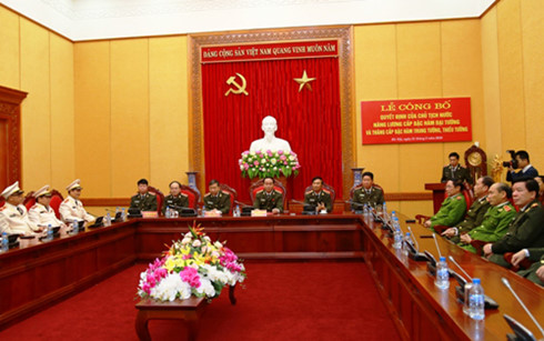 Bộ Công an công bố quyết định của Chủ tịch nước thăng hàm cấp Tướng trong Công an Nhân dân. Ảnh: VOV |