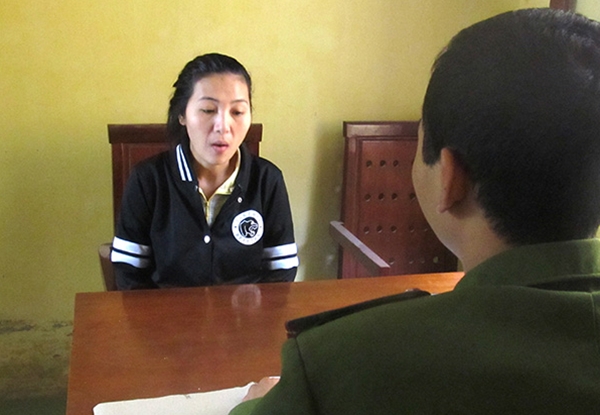 Công an quận Tây Hồ lấy lời khai của Lê Thị Thương - Ảnh: Công an nhân dân |