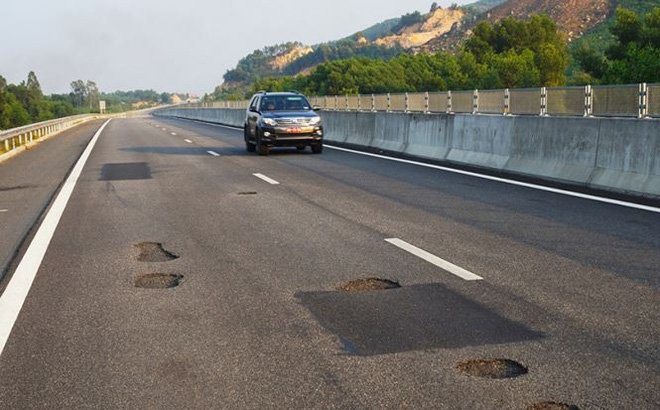 | Cao tốc 34 nghìn tỷ chi chít ổ gà. Ảnh Tiền phong |