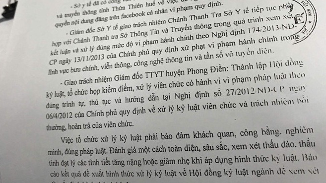 Liên quan đến thông tin bác sĩ Hoàng Công Truyện, Trung tâm Y tế huyện Phong Điền, tỉnh Thừa Thiên - Huế, bị xử phạt 5 triệu đồng vì "bôi nhọ" Bộ trưởng Bộ Y tế Nguyễn Thị Kim Tiến trên Facebook cá nhân, đại diện Bộ Y tế cho biết văn bản không đề nghị địa phương xử phạt bác sĩ này.