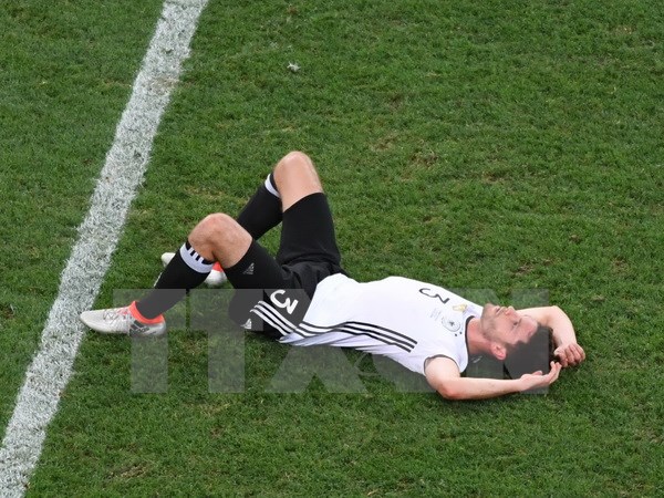 | Nỗi thất vọng của hậu vệ Đức Jonas Hector sau rất nhiều nỗ lực bảo vệ sân nhà trong trận đấu trước tuyển Pháp. (Ảnh: AFP/ TTXVN) |