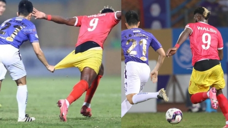 Tuyển thủ ĐTQG Việt Nam Trần Đình Trọng đang trở thành tâm điểm trên MXH sau pha phạm lỗi khá thô trước Chevaughn Walsh của Hồng Lĩnh Hà Tĩnh.