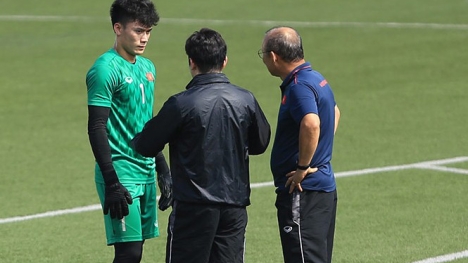 Trong buổi tập của U22 Việt Nam sáng ngày 6/12, thủ môn Bùi Tiến Dũng đã được HLV Park Hang Seo gọi riêng để trao đổi.