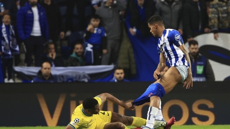 Denzel Dumfries vô tình kéo tụt quần tiền đạo Galeno của Porto trong trận lượt về Champions League vào rạng sáng nay.