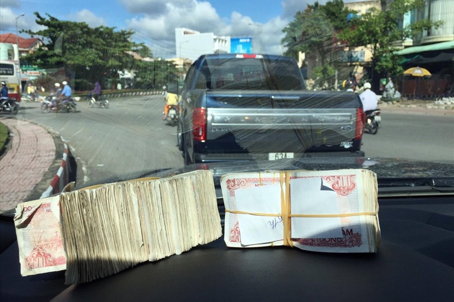 Phản đối trạm thu phí, các tài xế đã trả tiền qua trạm bằng tiển lẻ. Ảnh: Lao Động |