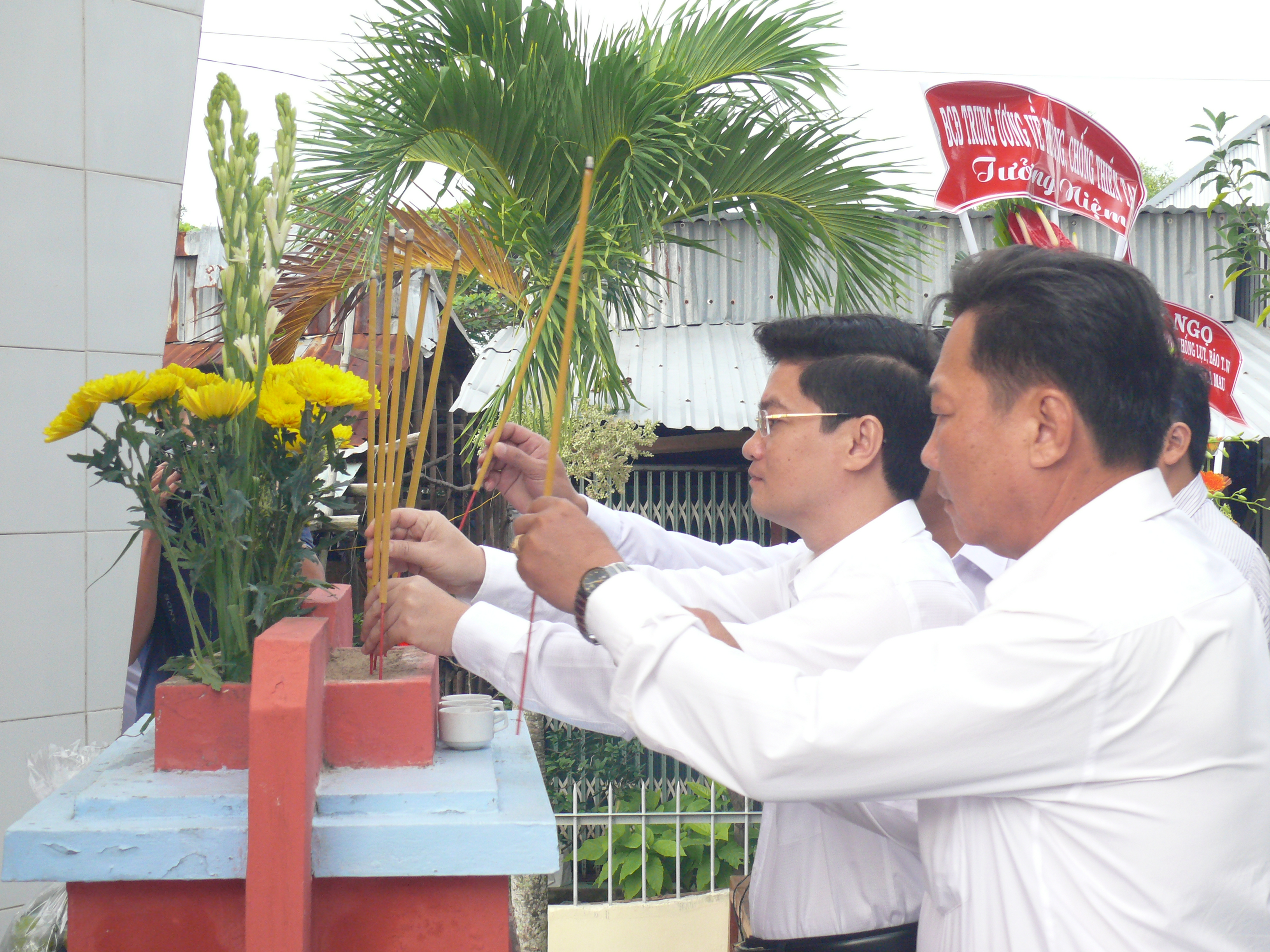 | Đoàn lãnh đạo Tỉnh ủy, UBND tỉnh và các ban, ngành thắp nén hương tưởng nhớ những nạn nhân trong cơn bão Linda. |