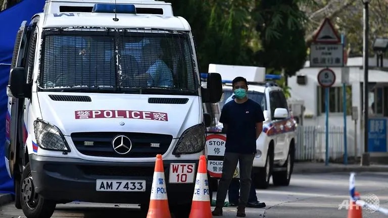 Cảnh sát Hong Kong tại chốt kiểm dịch thuộc điểm cách ly Lady MacLehose. Ảnh: AFP