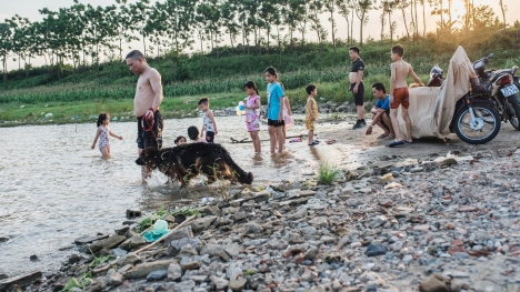 Bến đò sông Hồng trở thành bãi tắm tự phát dịp hè cho người dân Hà Nội dù tiềm ẩn nhiều nguy cơ