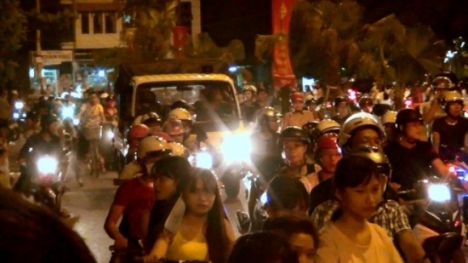 Đám đông hiếu kì tụ tập tại đường Hà Huy Tập (TP.Huế) để chứng kiến hai cô gái gặp nhau giải quyết "ân oán" mà trước đó đã hẹn nhau trên Facebook.