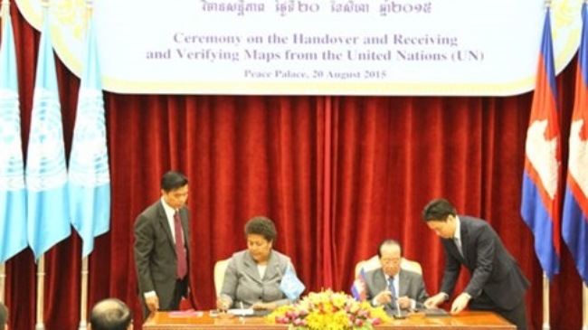Sáng 20/8, Campuchia đã tổ chức tiếp nhận bản đồ biên giới Việt Nam - Campuchia mà LHQ đang lưu giữ để tiến hành đối chứng với bản đồ mà Chính phủ Campuchia đang sử dụng để phân định và cắm mốc biên giới với Việt Nam.