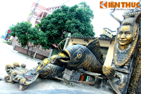 | Tượng cá chép biểu tượng của sự nỗ lực hết mình và ý chí kiên định được anh tưởng đặt ngay cổng căn biệt thự. Ảnh: KT |