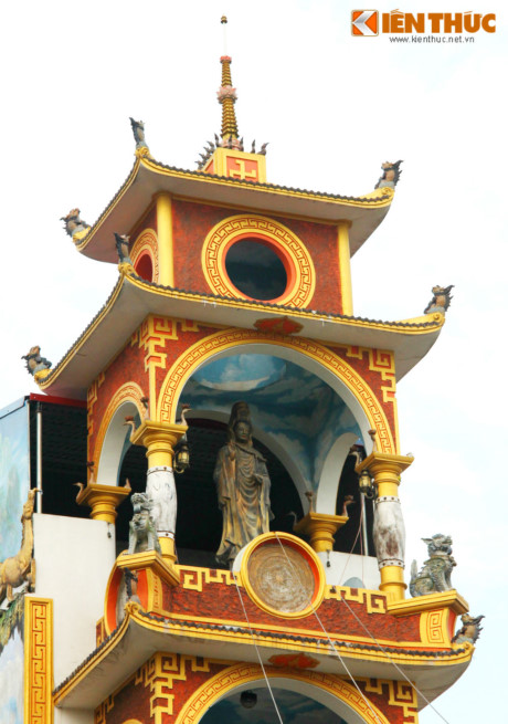 | Tầng cao nhất đặt một bức tượng quan thế âm bồ tát bằng đồng. Ảnh: Kiến thức |