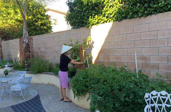 | Rất nhiều loại cây, rau gia vị Việt Nam được Thanh Thảo trồng trong vườn nhà. |
