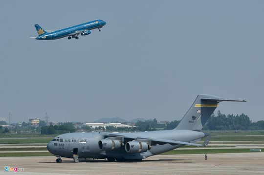 10 ngày trước chuyến thăm Việt Nam của Tổng thống Mỹ Donald Trump, vào sáng ngày 30/10, máy bay vận tải cỡ lớn C-17 của Mỹ đã đến sân bay quốc tế Nội Bài, Hà Nội.