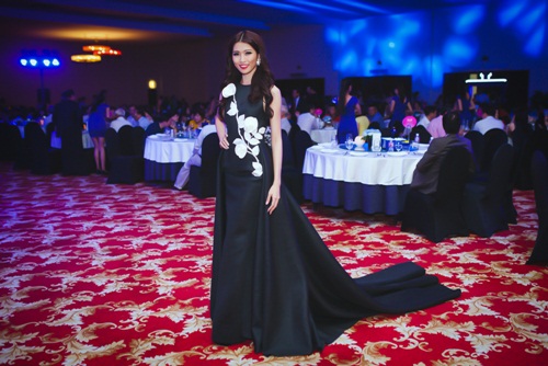 Quỳnh Châu rạng ngời trong trang phục dạ hội. Ảnh: H.Anh |