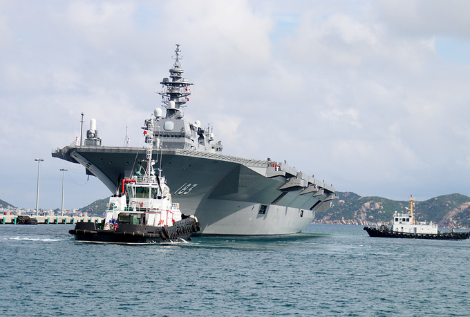 Tàu sân bay trực thăng JDS Izumo (DDH-183) thuộc lực lượng phòng vệ trên biển Nhật Bản (JMSDF) cập cảng quốc tế Cam Ranh ngày 20/5. Ảnh: Vnexpress |