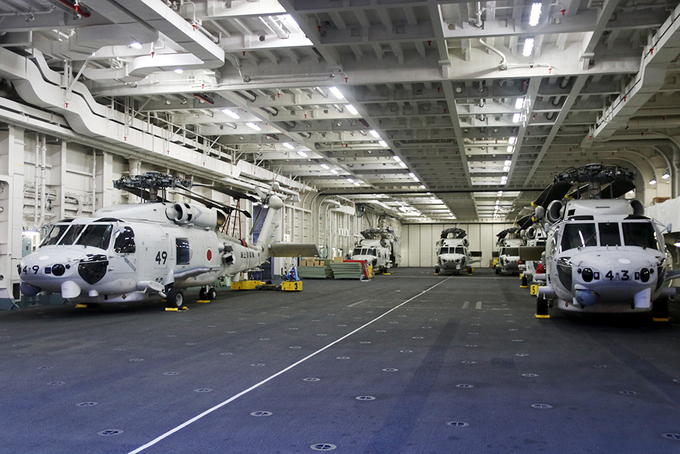 | DDH-183 có khả năng chở đến 28 máy bay các loại gồm chống ngầm.... Cùng lúc, tàu vận chuyển 400 binh lính cùng 50 xe tải loại 3,5 tấn và các thiết bị tương đương để thực hiện tìm kiếm cứu hộ. Ảnh: Vnexpress |
