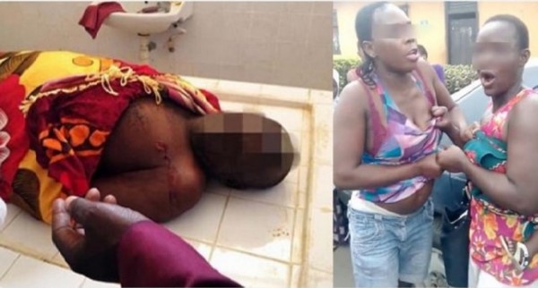 Thi thể của Adamu Dewa (trái) và hình ảnh hai người vợ tranh cãi với nhau xem chồng yêu ai hơn (phải). Ảnh: WWWN |