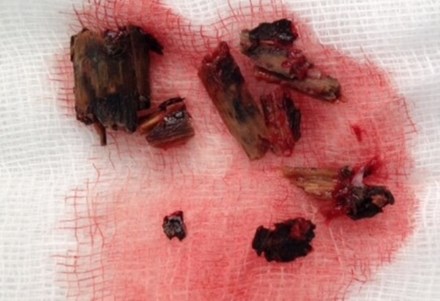 Một bệnh nhân nhập viện trong tình trạng mắt trái sưng tấy, rỉ mủ phải mổ đến lần thứ 8 mới lấy được hết cành cây ra.