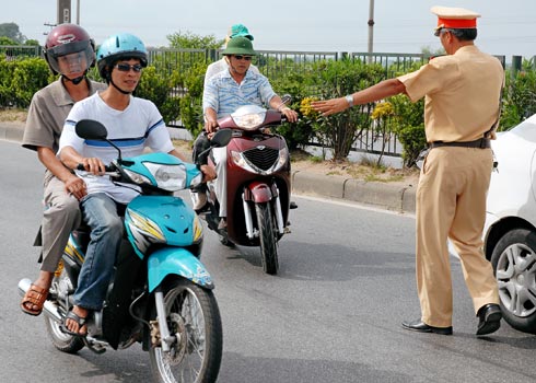 Cảnh sát giao thông Thanh Hóa gắn camera trên mũ khi tuần tra. Ảnh minh họa |