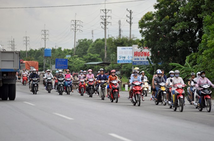 Vào thời điểm tan ca, hàng ngàn công nhân KCN Phúc Điền đi ngược chiều quốc lộ 5 về nhà, gây ảnh hưởng đến trật tự an toàn giao thông trên tuyến đường này. Ảnh: Kiến Thức |
