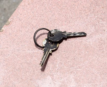 | Chiếc chìa khóa trong túi áo chị Hòa bị cũng bị cháy đen. Ảnh: Công Khoa |
