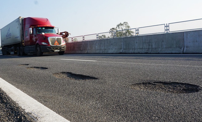 Những vị trí hỏng mặt đường cao tốc Đà Nẵng - Quảng Ngãi. Ảnh: Tri thức trực tuyến |