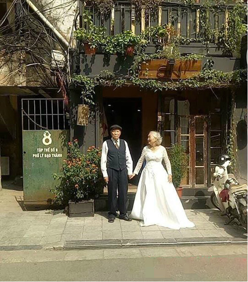 Mới đây, Cộng đồng mạng đang lan truyền bức ảnh chụp hình một cụ ông nắm tay cụ bà, tươi cười chụp ảnh trong trang phục cưới trên phố đi bộ. Khoảnh khắc đẹp được ghi lại vào sáng sớm ngày 29/10 trên phố Lý Đạo Thành, Hà Nội đã nhận được sự yêu thích từ cư dân mạng.