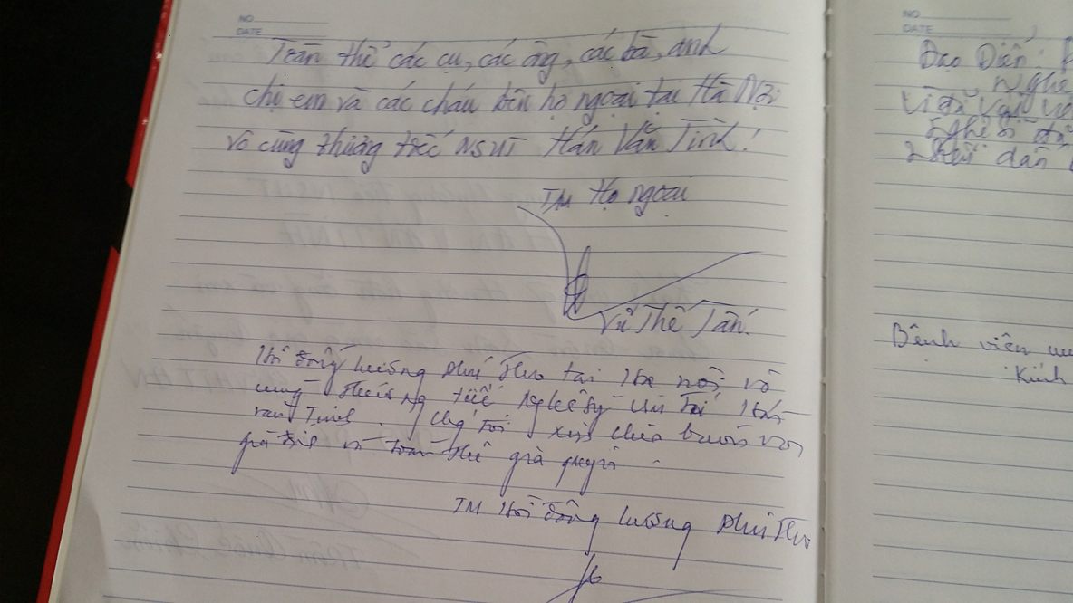 Trước lúc đi xa, nghệ sĩ Hán Văn Tình còn dặn dò: "Nếu chẳng may có mệnh hệ gì, cô hãy gửi lời cảm ơn giúp tôi tới toàn thể quý khán giả, những người yêu mến và luôn sát cánh bên tôi trong lúc tôi lâm nạn. Và đặc biệt là gửi lời cảm ơn sâu sắc tới tập thể y bác sĩ đã dang tay ra cứu tôi, cứu mạng sống của tôi trong hai năm qua. Và cám ơn các bạn đồng nghiệp đã luôn có mặt động viên thăm hỏi. Cám ơn tất cả!"