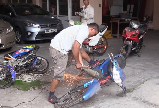 | Những chiếc môtô với hình thù "kinh dị" để tham gia đua xe trái phép đã bị Phòng CSGT Công an tỉnh Bình Dương tiến hành tiêu hủy. |