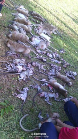 | Một cư dân mạng Thái Lan đã đăng tải trên trang Facebook cá nhân về vụ việc 52 chú khỉ bị chết hàng loạt tại một làng khỉ ở Chanthaburi, một tỉnh miền Đông của nước này. Vụ việc đã thu hút sự chú ý rất lớn của dư luận. |