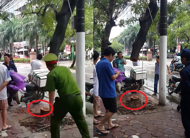 Hiện trường vụ cây sưa đỏ bị cưa trộm trên phố Phan Kế Bính. (Ảnh: Sức Khỏe Cộng Đồng) |