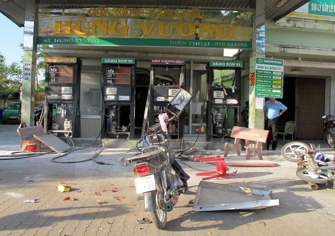 Vào thời điểm trên, bốn trụ bơm xăng của cây xăng Hùng Vương bất ngờ phát nổ kèm theo cháy. Tại hiện trường, nhiều mảnh vỡ vung tung tóa ra ngoài, bốn trụ bơm xăng đều bị hư hỏng nặng, căn nhà liền kề phía cây xăng cũng bị hư hại đồ đạc, các cửa kính bị bể nát.