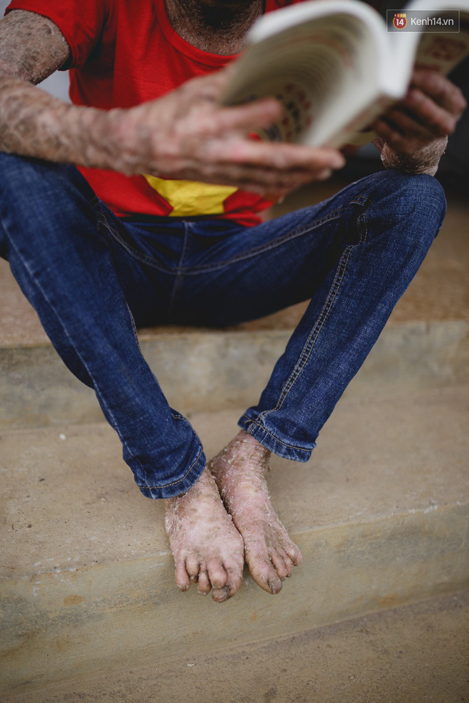 Bệnh hoại tử da khiến Thọ mất một đốt ngón tay phải, bàn chân dị dạng, quả đầu thì lởm chởm chẳng theo "mốt" nào hiện nay.