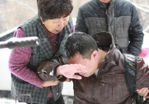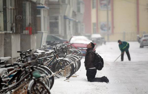 Nam thanh niên quỳ gối suốt 2 tiếng đồng hồ trong thời tiết giá lạnh để đòi gặp mặt bạn gái.