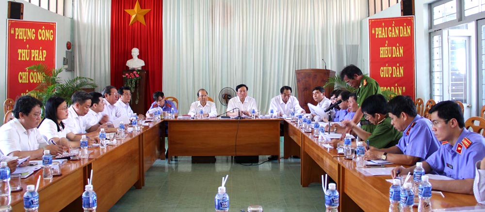 Ông Nguyễn Hòa Bình - Chánh án TAND tối cao làm việc với các cơ quan tố tụng tỉnh Bình Thuận và Cục Bồi thường Nhà nước, chỉ đạo giải quyết bồi thường oan sai cho ông Huỳnh Văn Nén.