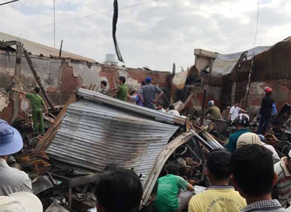 Vào nửa đêm, ngọn lửa bốc lên dữ dội đã thiêu rụi nhiều đồ đạc của tiểu thương trong chợ khiến hai vợ chồng tử vong thương tâm.