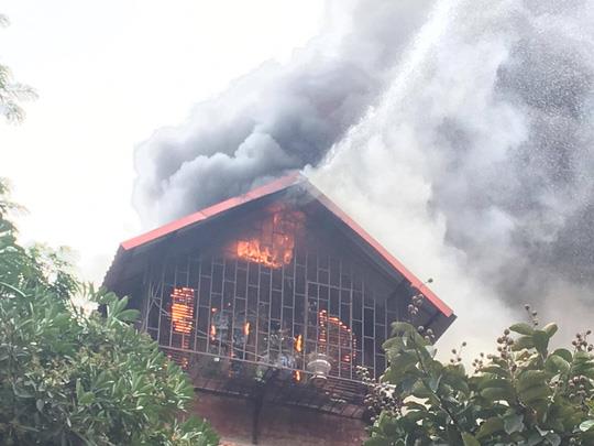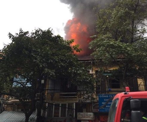 Ngọn lửa bùng phát từ ngôi nhà số 83 Phùng Hưng. Ảnh NLĐ |