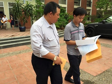 | "800 bộ hồ sơ tuyển sinh vào lớp 6 của trường Lương Thế Vinh hết vèo trong buổi sáng đầu tiên phát hành. Ảnh: PHáp luật TP HCM |