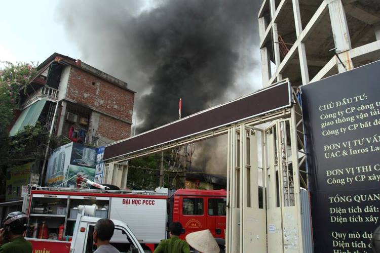 Vụ cháy lớn xảy ra tại phố Triều Khúc, Thanh Xuân, Hà Nội. Khói lửa bốc lên cuồn cuộn, từ xa hàng km vẫn có thể nhìn thấy.
