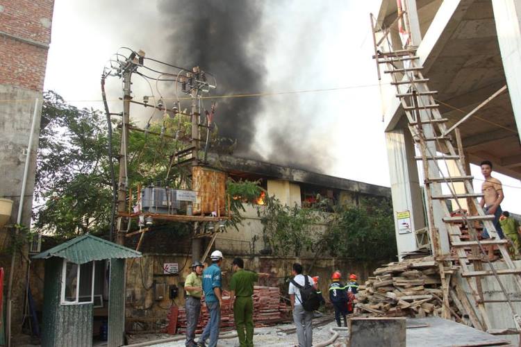 Theo tìm hiểu của phóng viên, vụ cháy xảy ra tại xưởng sửa chữa ô tô của Công ty cổ phần Ô tô Hòa Bình.
