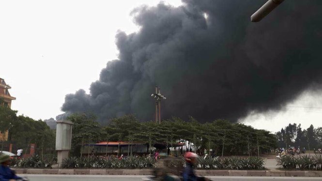 Khói bốc lên nghi ngút tại khu vực nhà máy gạch Viglacera Thăng Long. Ảnh: Tuổi Trẻ |
