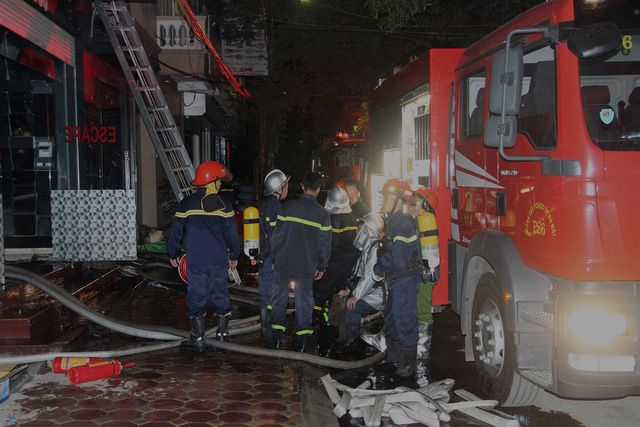 Ngay sau khi nhận được tin báo, lực lượng cảnh sát PCCC, Công an Hà Nội khẩn trương điều 4 xe cứu hỏa đến hiện trường dập lửa. Đến 20h30, khói vẫn tỏa ra nghi ngút. Lực lượng PCCC phải dùng búa tạ để phá tường.