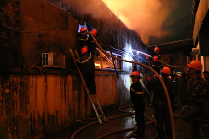 Đến hơn 23h40 đêm qua, lực lượng chữa cháy về cơ bản đã khống chế được ngọn lửa xung quanh không cho cháy lan sang các khu xưởng khác. Sau khi vụ cháy đã được khống chế hoàn toàn, toàn bộ kết cấu bên trong của khu xưởng đã đổ sập.
