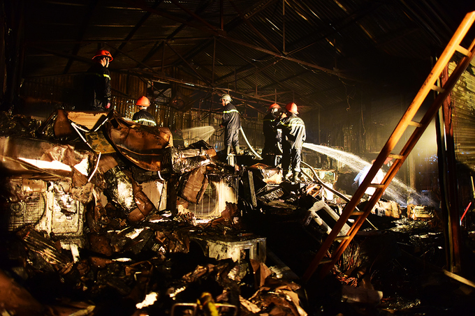 VnExpress thông tin thêm lực lượng chức năng phải sử dụng máy cắt để cắt cửa cuốn, phá cửa bên hông, đập tường phía sau, tiếp cận hiện trường bằng nhiều hướng để dập lửa.