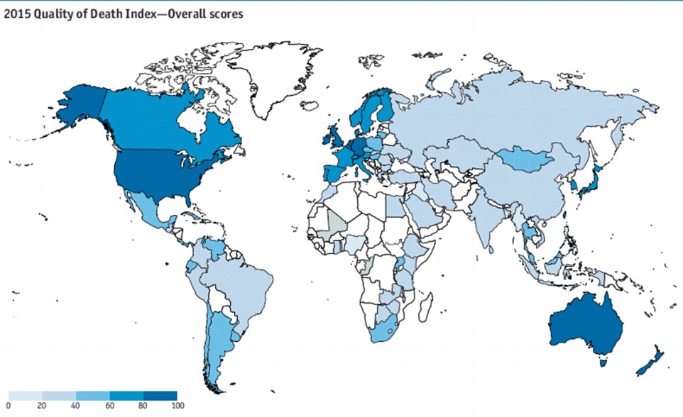 Australia và New Zealand đứng thứ 2 và thứ 3 trong nghiên cứu "Chất lượng cái chết 2015" (Quality of Death). Mỹ đứng thứ 9 sau Ireland, Bỉ, Đài Loan, Đức và Hà Lan, theo báo cáo từ Economist Intelligence Unit (EIU).