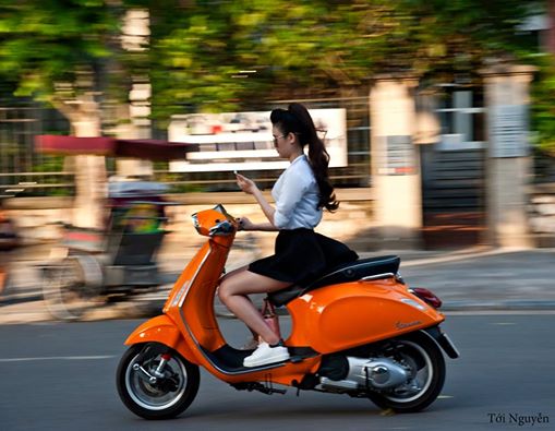 Theo nội dung hình ảnh có thể thấy, cô gái đi trên chiếc xe Vespa LXS vàng cam nổi bật trên phố. Ngoài ra, cô gái này còn gây ấn tượng với bộ váy ngắn quyến rũ thời thượng.